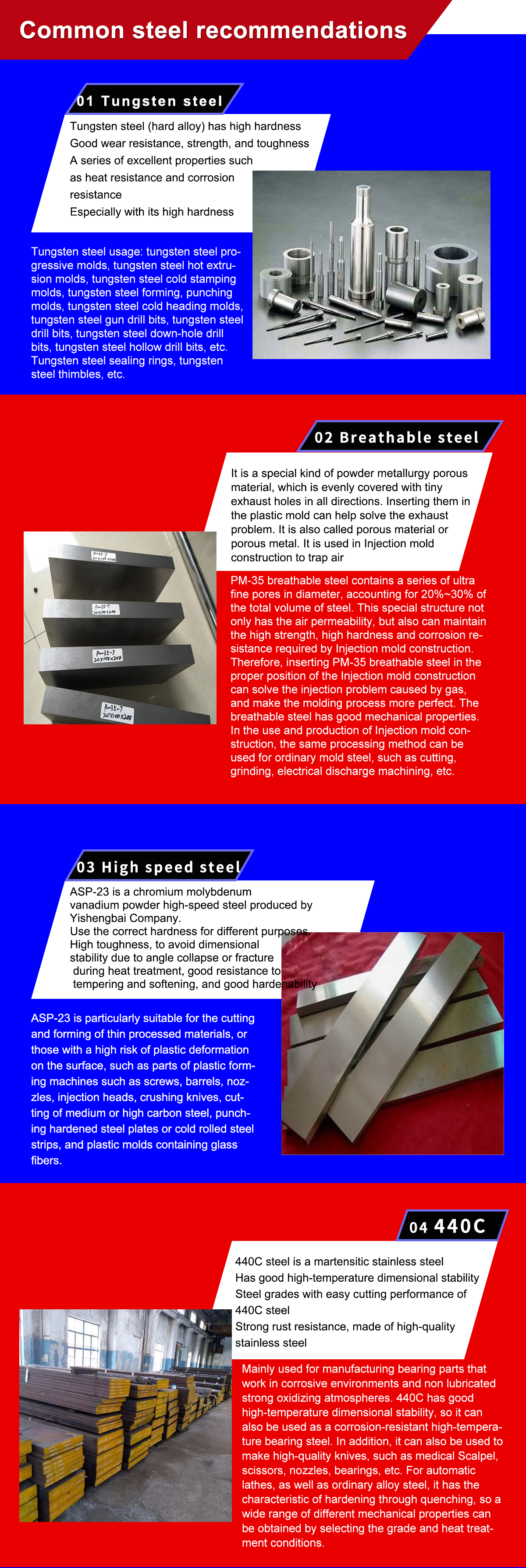 Steel is a necessity for urban development, and various steel companies actively maintain their market territory in this steel sales market. However, with the impact of the global economic crisis, the development of the steel market has also been greatly affected, and competition has become more intense. Continuously improving the quality, service, and application of steel are people's needs. Dongguan Yishengbai Heat Treatment Co., Ltd. has over 15000 tons of high-quality die steel and steel for mechanical equipment, equipped with a laboratory of metallographic analyzer, mechanical analyzer, die wear, steel cold and hot fatigue test and other instruments and equipment; Equipped with high-tech, multi-functional heat treatment plant, steel machining plant and other services, it is one of the influential high-quality special mold steel supply bases in South China. Adhering to the quality policy of "integrity and innovation, scientific and efficient, continuous improvement, and customer satisfaction", we will integrate product quality control throughout the entire process of research and development, procurement, production, warehousing, sales, and service. The company relies on advanced production and testing equipment and quality management system to ensure the stability of quality and win the recognition of customers.